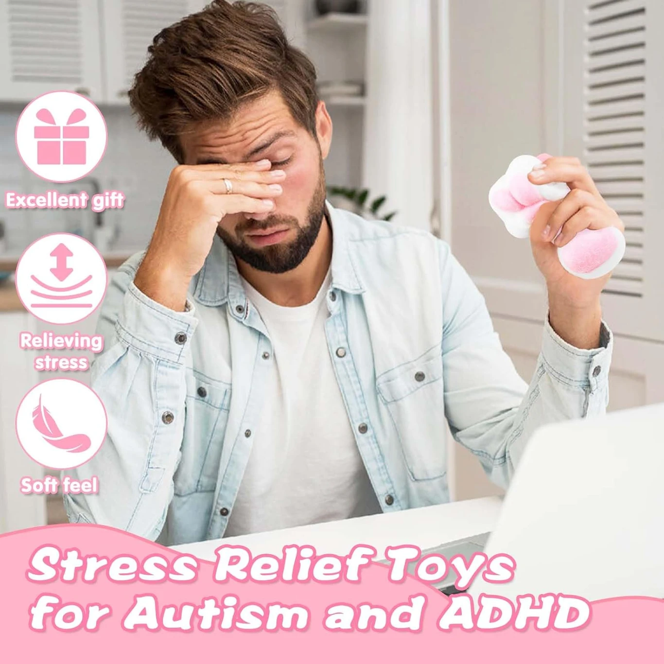 2 Packs Pink Cat Paw Squishies Fidget Toys Adults, Sticky Cute Squeeze Sensory Toys for Autism and Stress Relief